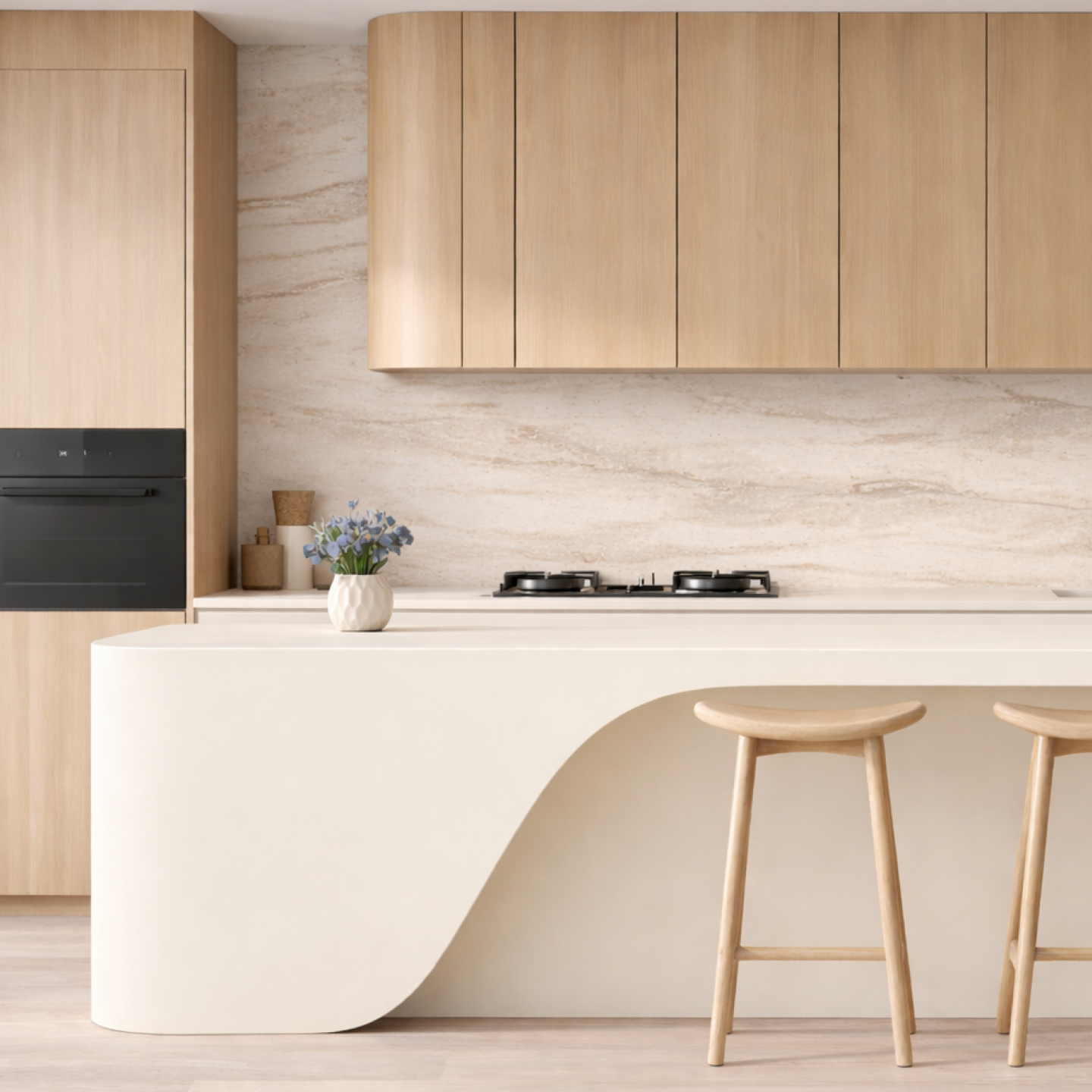 Kerrock omogoča izdelavo površin brez vidnih spojev, kar ustvarja popolnoma homogeno in elegantno celoto. Takšna estetika ni le vizualno privlačna, temveč prinaša tudi številne funkcionalne prednosti: