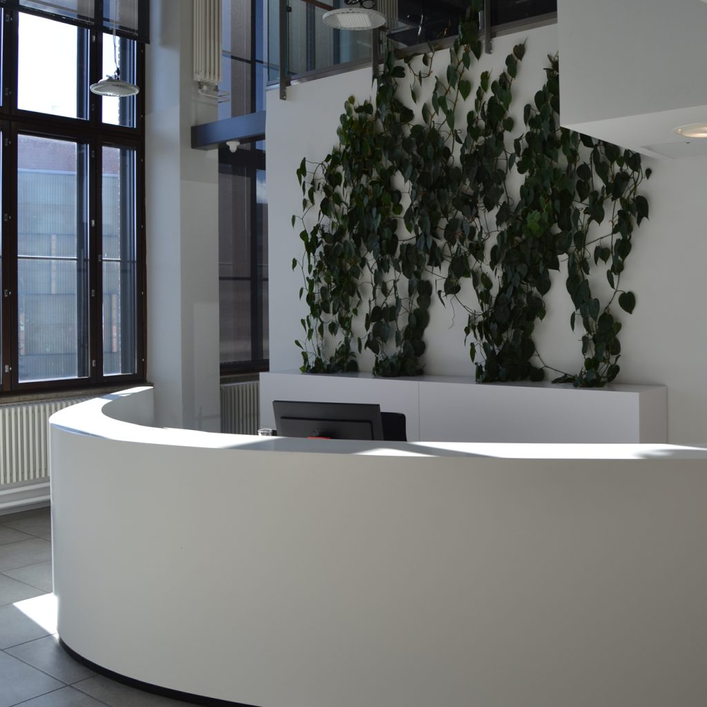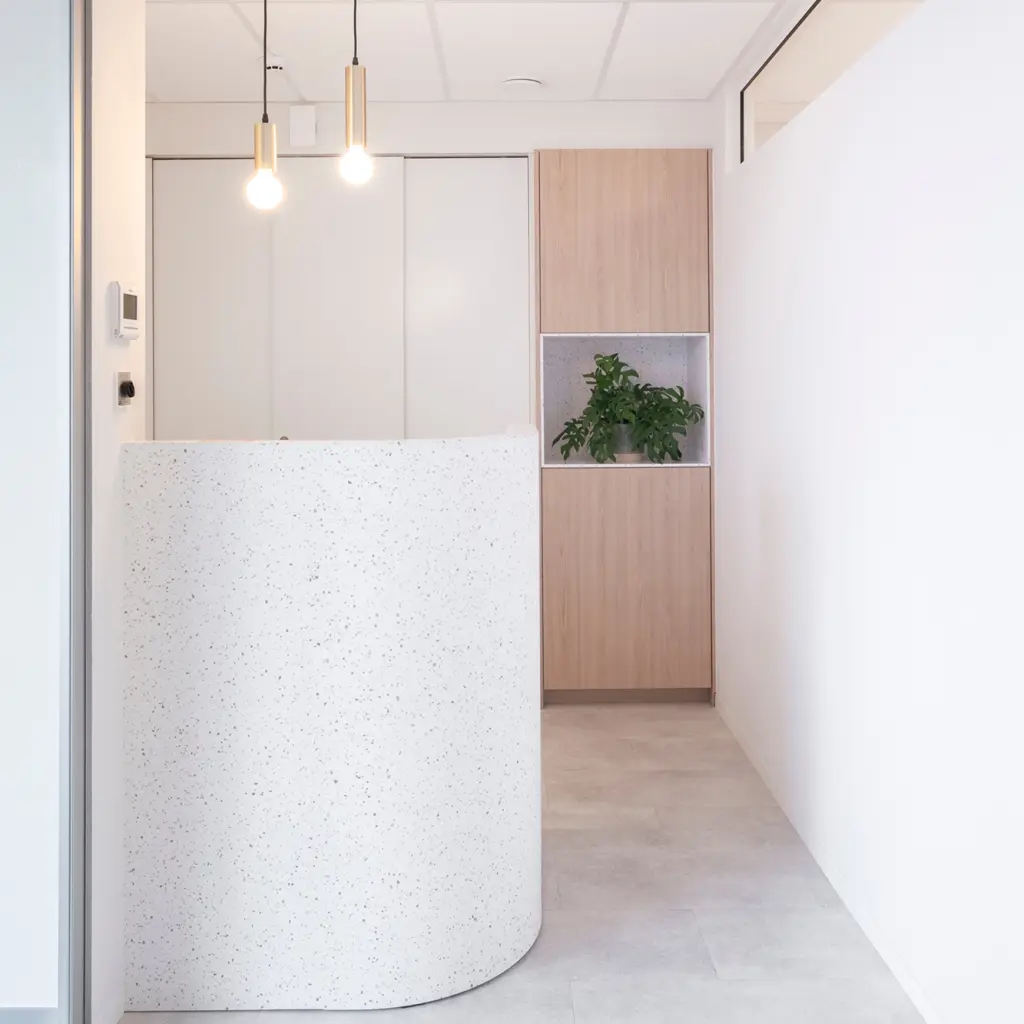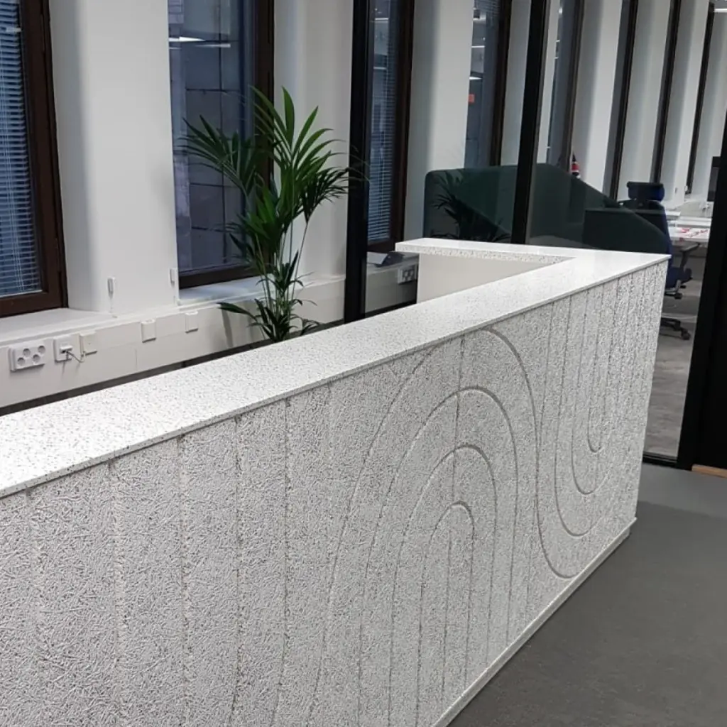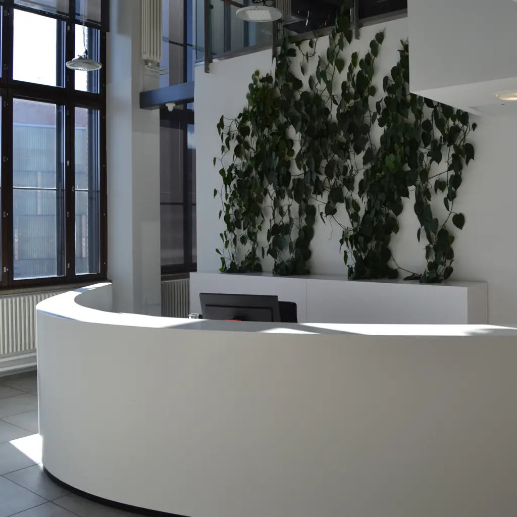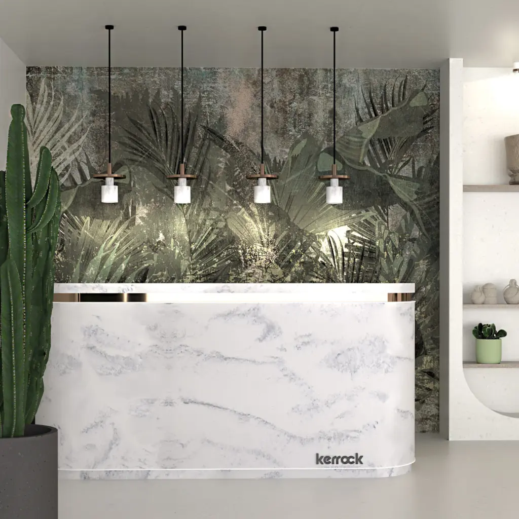 Kerrock je material, ki podjetjem omogoča oblikovanje prostorov z izrazitim občutkom za estetiko, dovršenostjo in sodobno podobo. Njegova gladka, brezšivna površina ustvarja vtis prestiža in urejenosti, medtem ko prilagodljivost pri oblikovanju omogoča, da se povsem prilagodi zahtevam arhitektov in notranjih oblikovalcev.