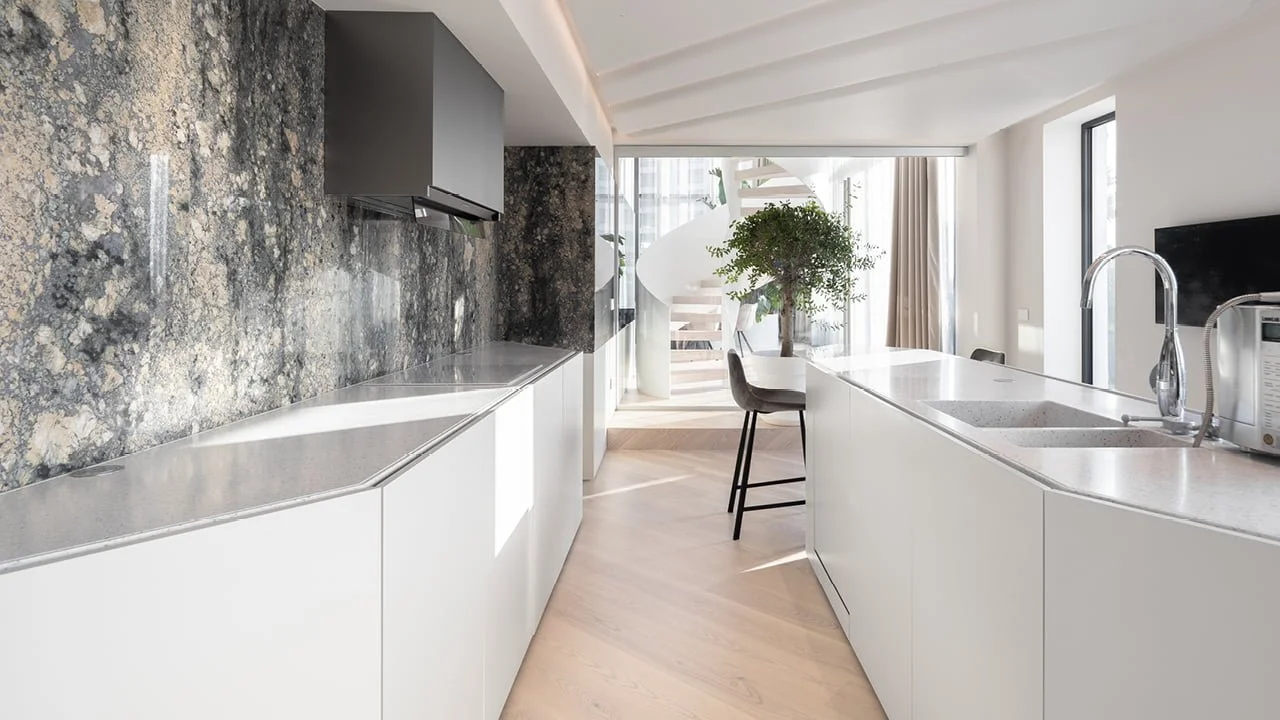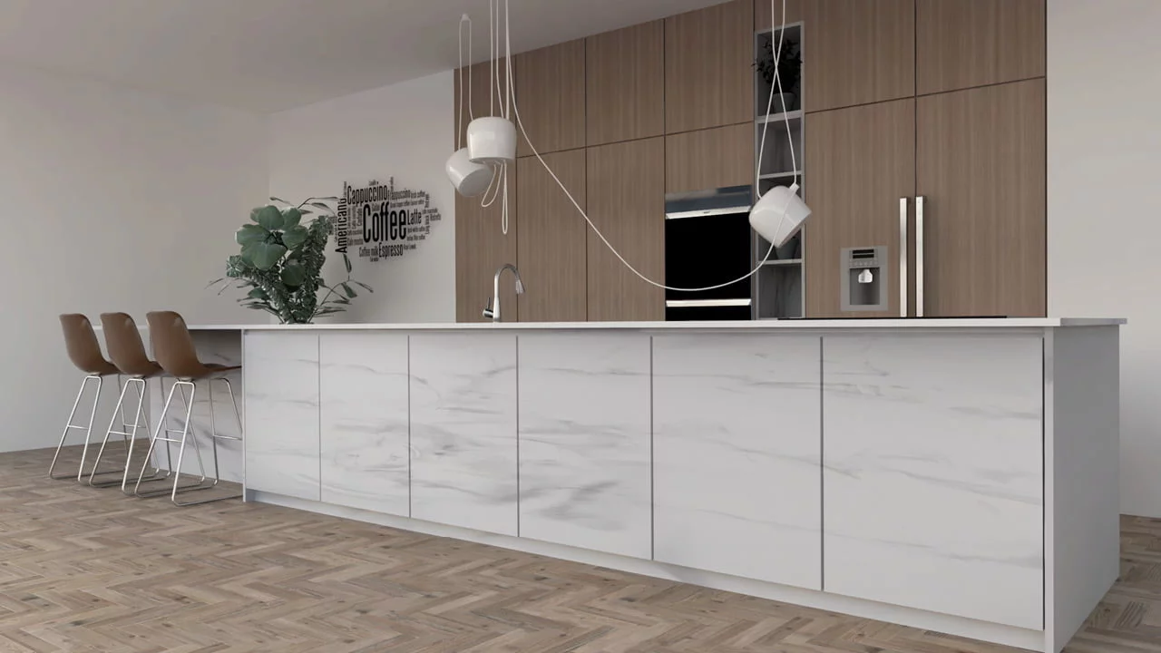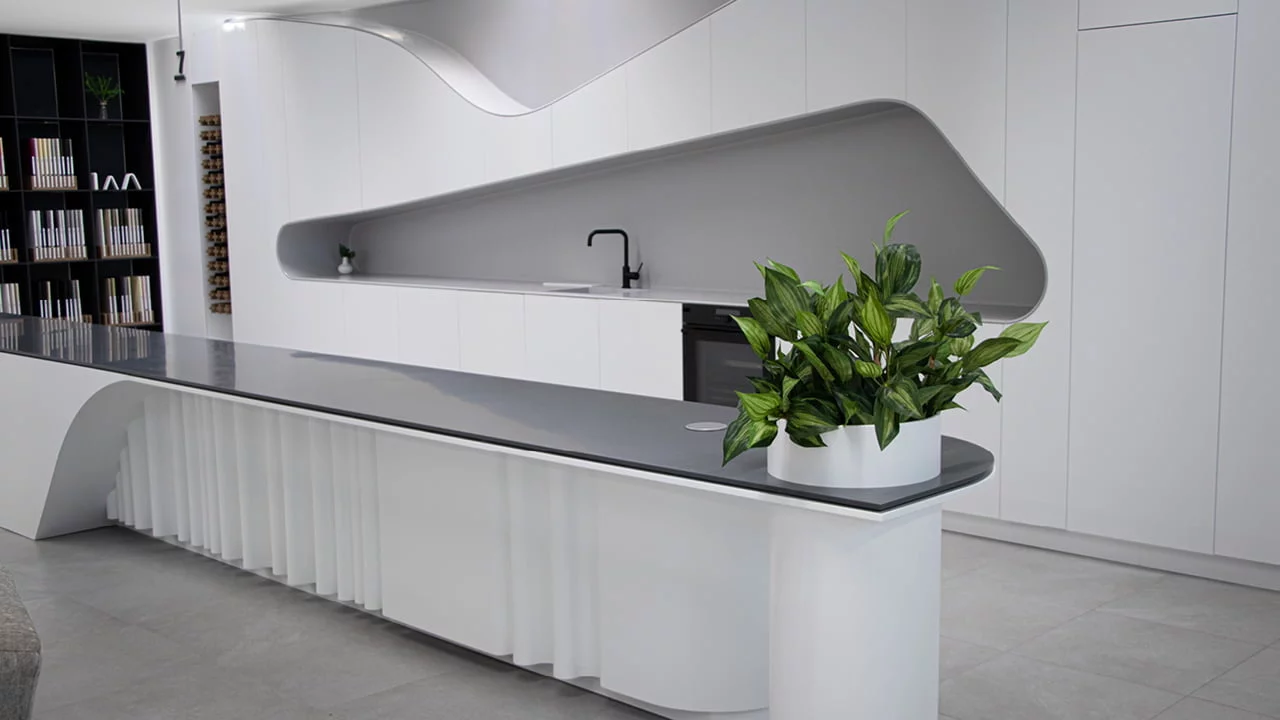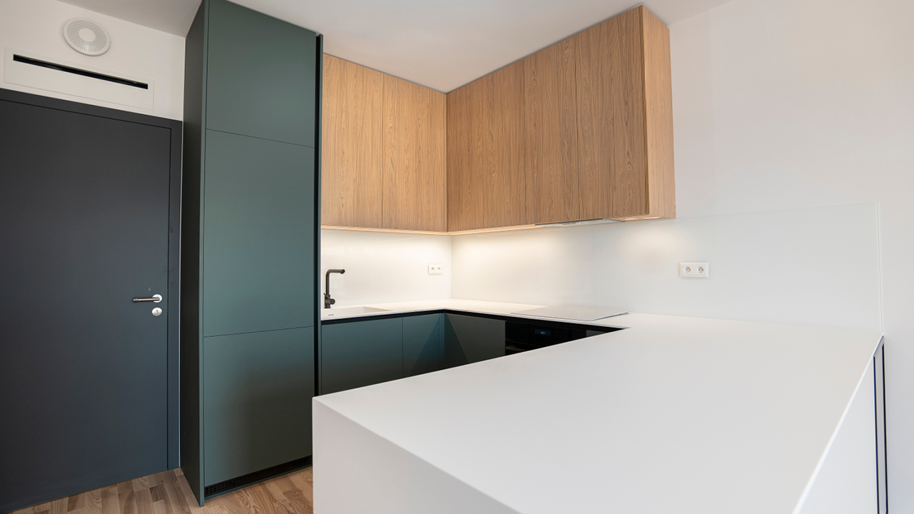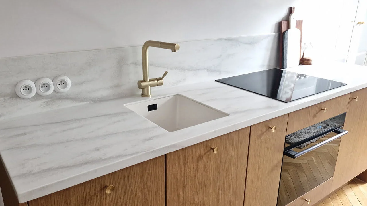 Zdravju prijazen in mehansko odporen, z veliko mero estetike. Kuhinja kerrock.